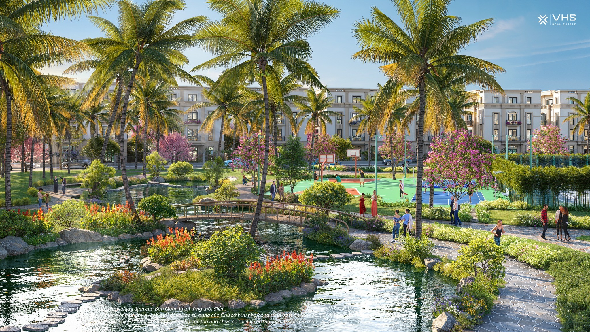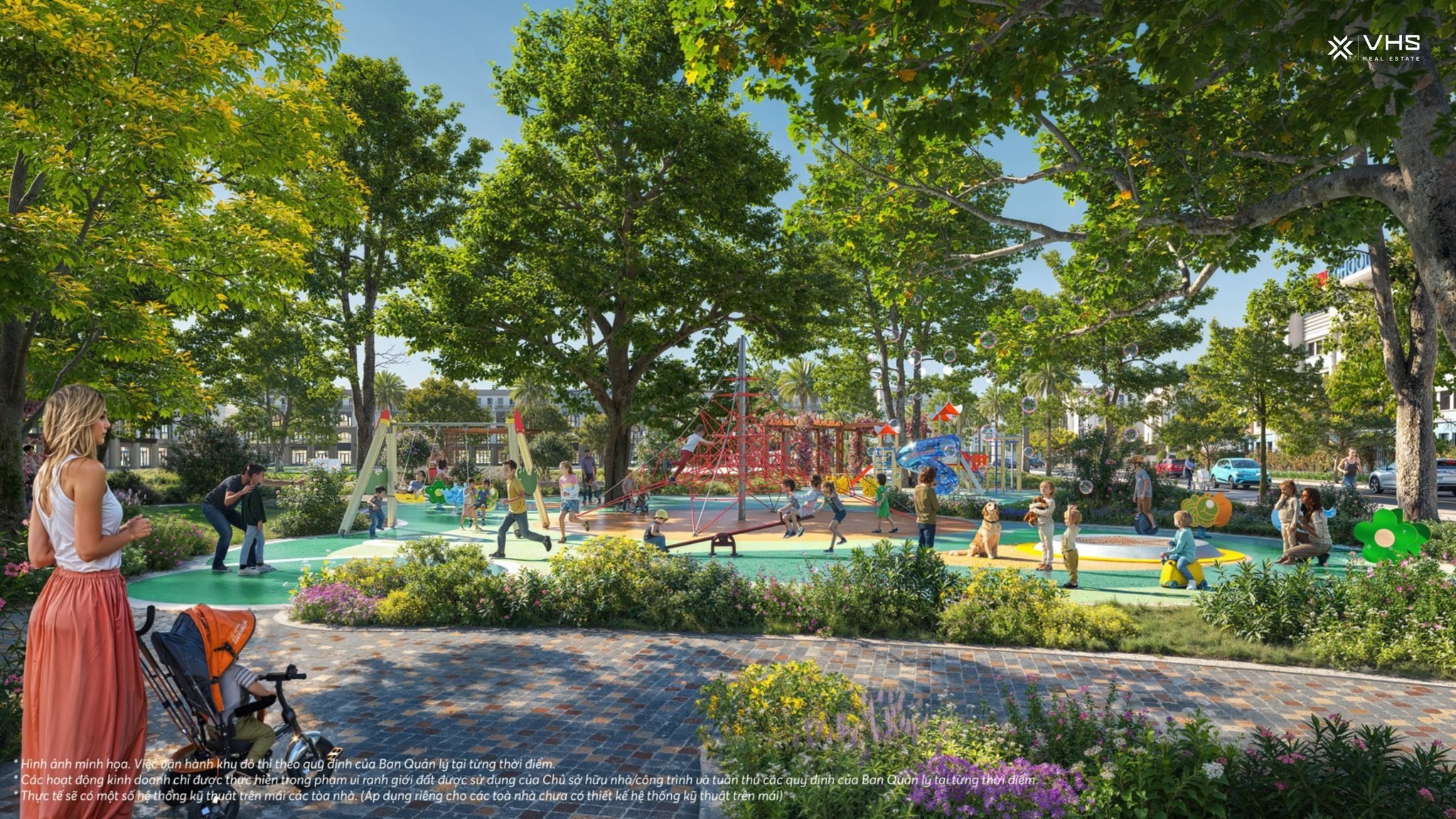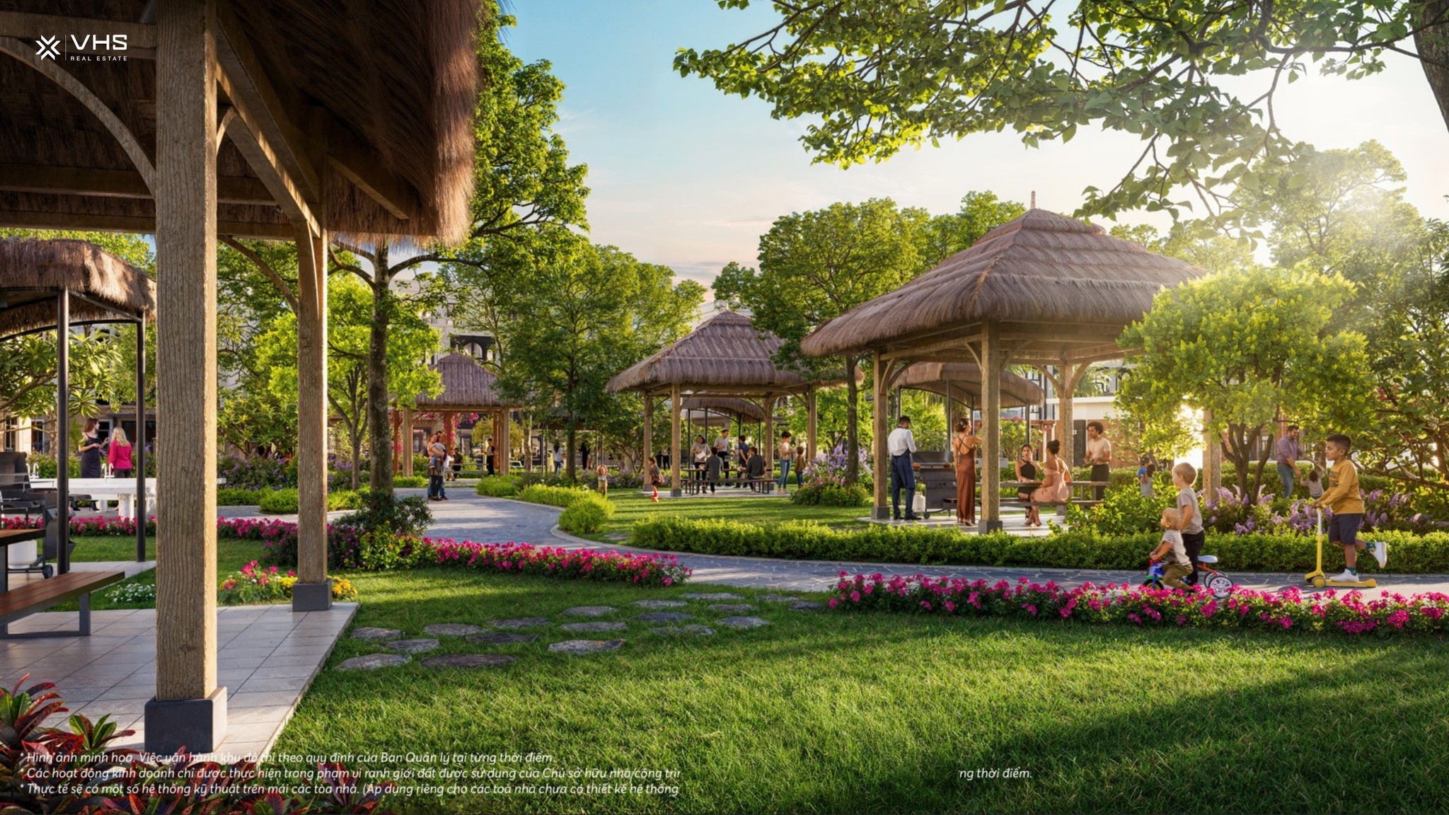 Các dải công viên, đường dạo bộ, khu vườn hoa xen kẽ giữa những dãy biệt thự, liền kề, shophouse giúp cư dân luôn được “sống trong thiên nhiên” – nơi mỗi sáng mở cửa sổ là hương cỏ cây, mỗi chiều tản bộ là khung cảnh bình yên, thư thái.